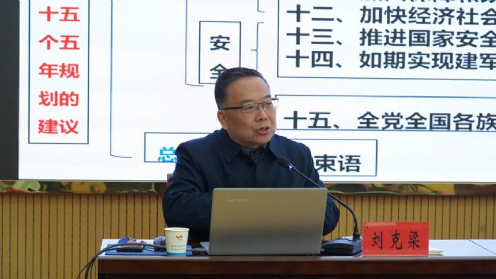 报告会上,刘克梁以《全面推进中国式现代化的行动纲领》为题,围绕党的二十届四中全会的重要背景和重大意义、重要内容和主要特点、学习方法和实践要求等方面,重点解读阐释了“十五五”时期经济社会发展的指导方针、主要目标、战略任务、重大举措和根本保证,帮助宣讲团成员进一步把握核心要义、精神实质和实践要求,为高质量开展面向青年的宣讲工作打下坚实基础。