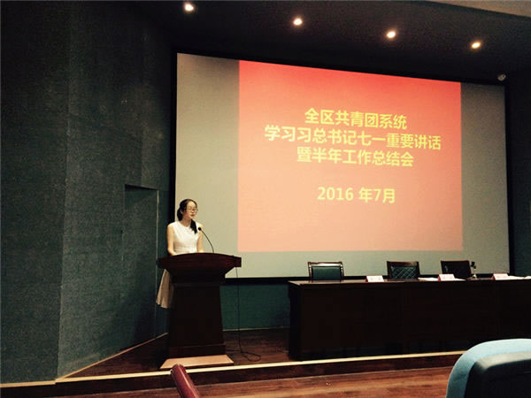 最后,团区委书记杨陈组织学习了习总书记“七一”重要讲话,全区各级团组织要注重突出“不忘初心,继续前进”的思想精髓和重要要求,要大力发扬“党有号召、团有行动”的光荣传统,用“七一”重要讲话描绘的奋斗目标和美好蓝图激励青年,广泛开展“青春建功十三五”主题实践活动。接着,就上半年工作进行总结,上半年,团区委积极适应改革新形势,探索基层改革新路径,取得了一定突破和进步,得到了市、区两级的充分肯定。一是直面痛点,改革创新有突破。二是瞄准焦点,青春扶贫有影响。三是围绕热点,基层团建有活力。四是找准难点,服务双创有实招。五是高筑起点,对口支援有升华。六是找准熔点,新闻宣传有质变。在下半年的工作中,团区委从五大方面着手,结合实际不断提升共青团工作力度和能力。一是进一步深化改革,加快推进平台建设,更好直接服务青年;二是进一步加强学习,加快提升综合素质,更好推进两学一做;三是进一步突出重点,加快留守儿童结对,更好推进精准扶贫;四是进一步整合资源,加快打造青媒矩阵,更好传递青年之声;五是进一步创新方式,加快推动电商发展,更好服务创业创新。