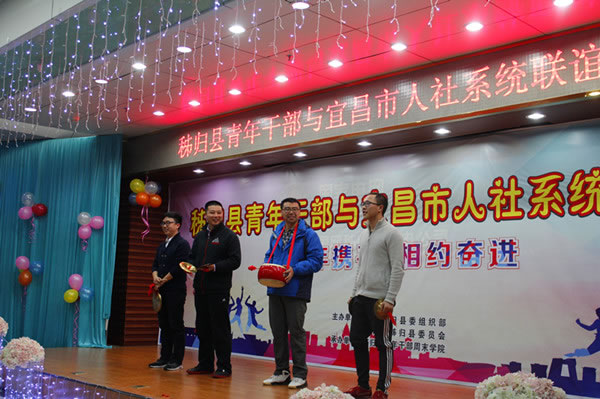 (通讯员:郭园园)12月2日,在脐橙飘香、美丽如画的秭归县,宜昌市人社系统30名青年干部代表,与秭归青年齐聚一堂,开展参观学习、爱心助学、廉政教育、体育竞技、文艺演出等联谊交流活动。宜昌市人社局党组成员、副局长代红新,秭归县委常委、组织部长赵万华出席活动,市人社局人事科、机关党委、团委和秭归县人社局、团委等相关负责人参加活动。在局党组的关心重视和秭归县的精心组织下,两地青年的联谊交流活动取得了圆满成功。