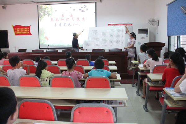 8月2日,樟村坪中小学的部分老师在副校长余鑫同志的带领下,以志愿者的身份义务为孩子们授课。在孩子们欢呼雀跃声中,彭应龙老师为孩子们展示了自己的精美毛笔书法作品,并从提笔、运笔、顿笔开始,为孩子们上了一堂生动的毛笔书法提升课。声乐老师余良举老师和科学老师曹蔼蓉老师为孩子们上了声乐课,普及了自然灾害预警信号图及遇见各种自然灾害分别如何逃生和处理等等自然灾害科普知识。