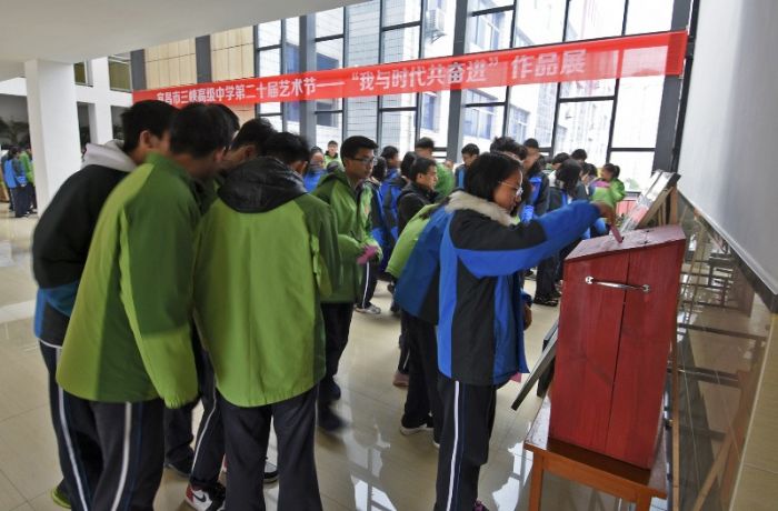 2018年12月27日,三峡高中第二十届艺术节——“我与时代共奋进”作品展开展,展示作品分为书法、绘画、摄影、数学模型和生物模型5个项目,共展出师生作品近200件。